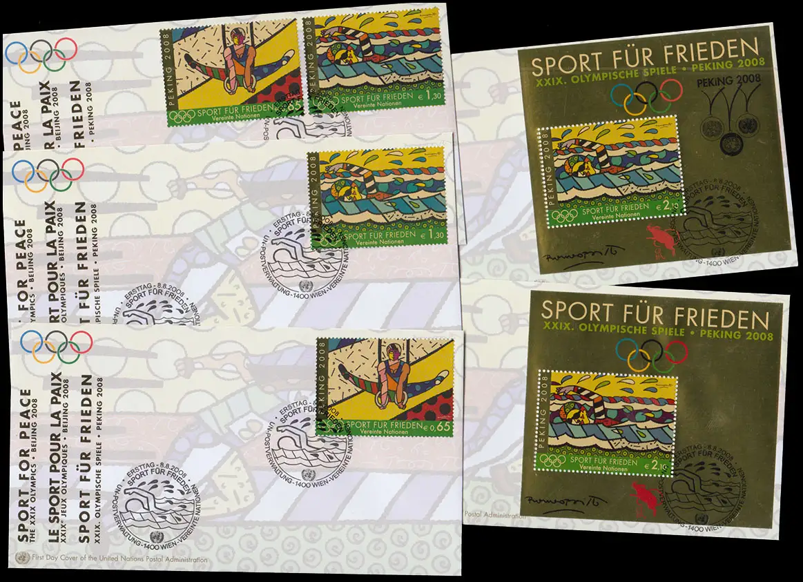 UNO Vienne: Olympia Pékin 2008 Ensemble de timbres individuels bloc 22+22I chacun sur les bijoux FDC
