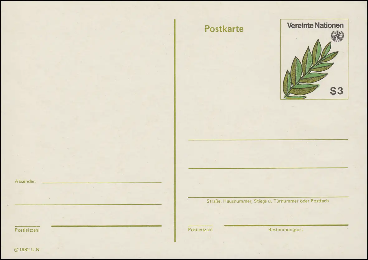 Nations unies Vienne Carte postale P 1 Olivier 3 Schilling 1982, inutilisé **