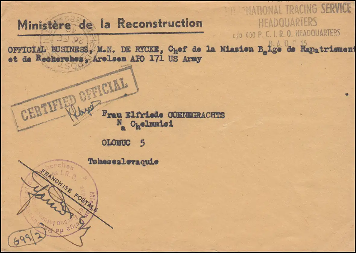 US Army FIELD POST Officice 382 - 26-2-1948 Lettre Arolsen National TRACING SERVICE