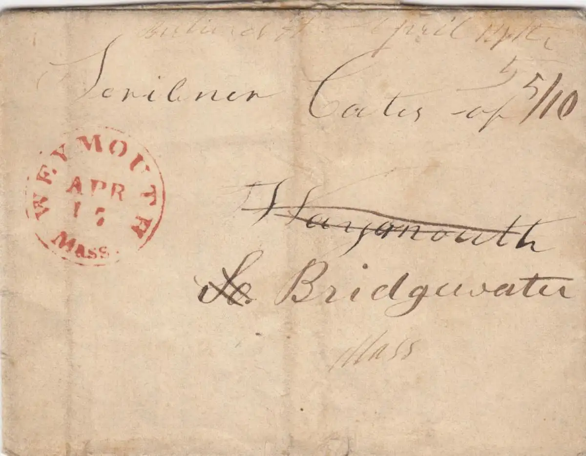 États-Unis: 1848: Weymouth/Mass to Bridgwater/Mass with text