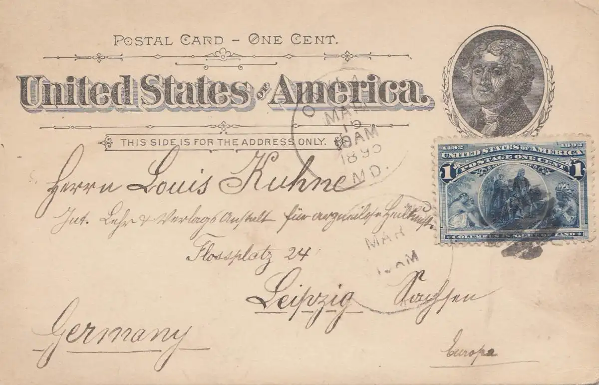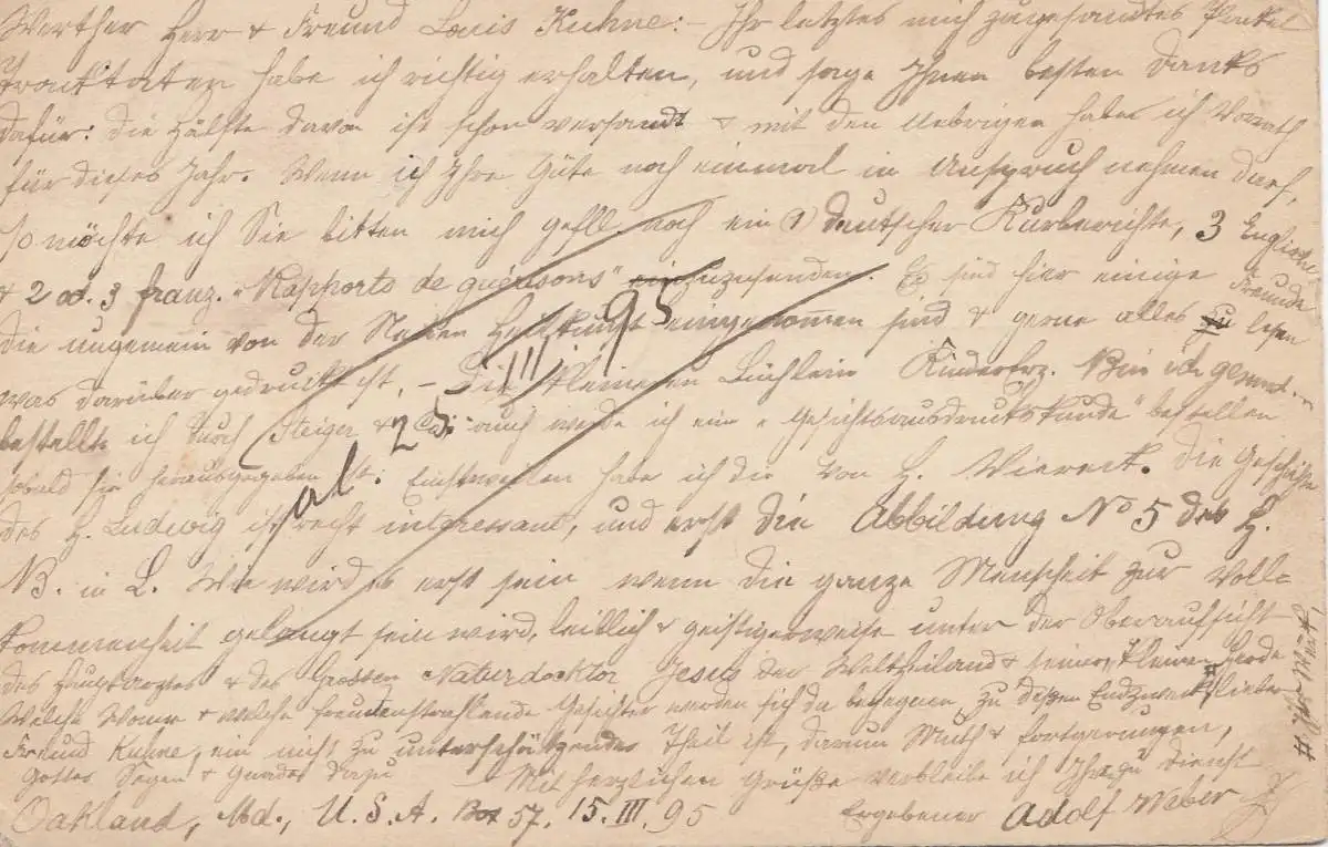 USA 1895: post card Oaklands to Leipzig/Germany