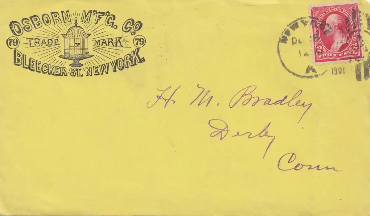 USA 1901: New York Osborn MFC, New york to Derby, including bill