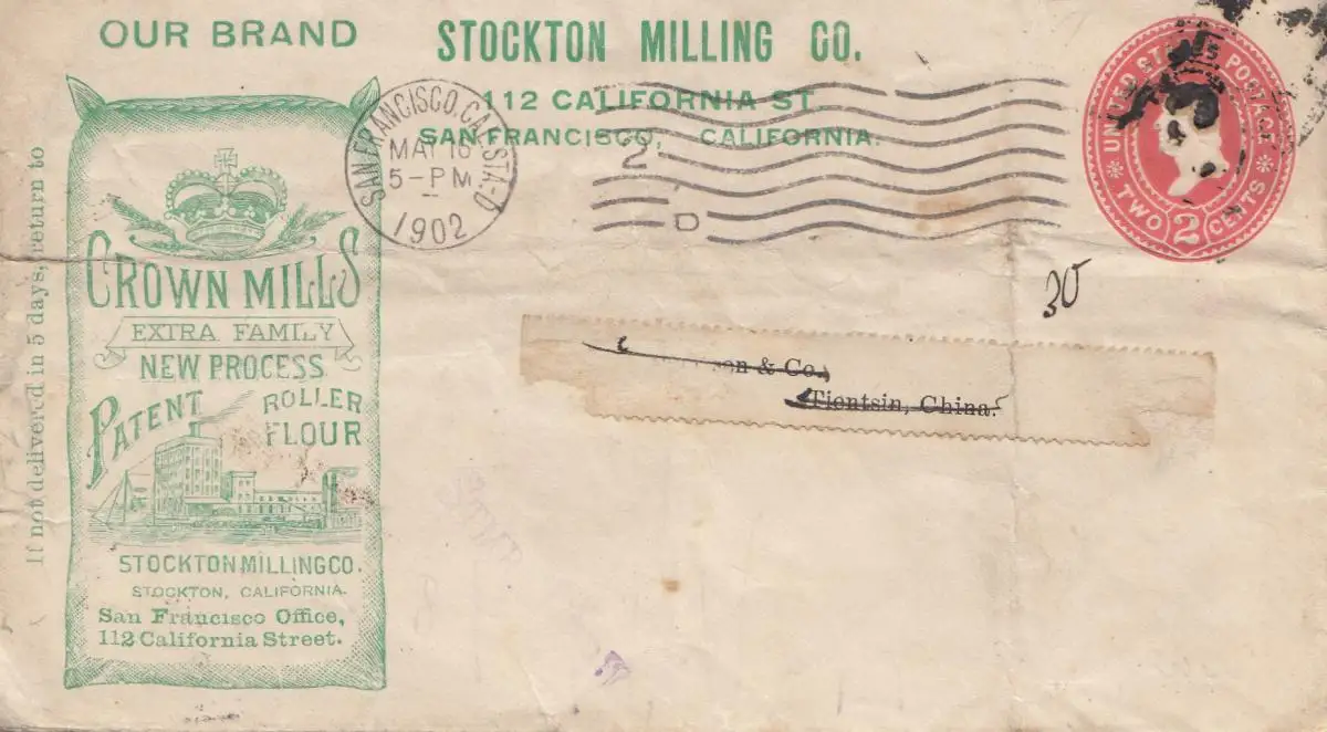 États-Unis d'Amérique 1902: Stockton Milling San Francisco California to China, Tientsin, Shanghai