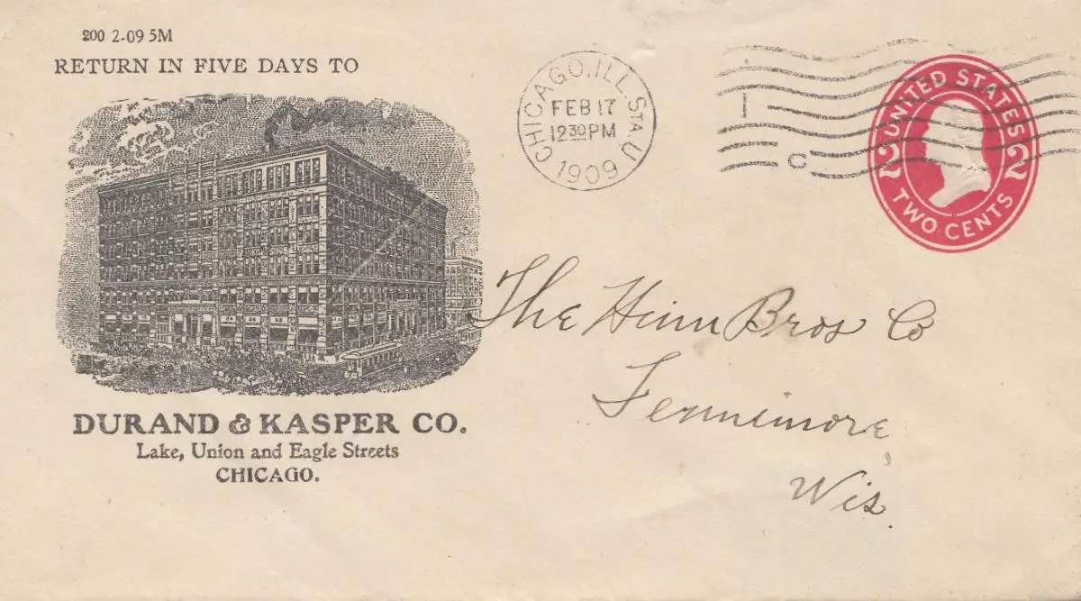 États-Unis 1909: Durand & Kasper, Chicago to Wisconsin