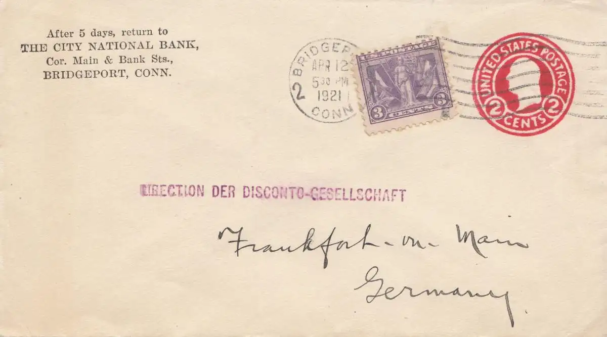 USA 1921: Bridgeport, Conn, to Frankfurt Germany