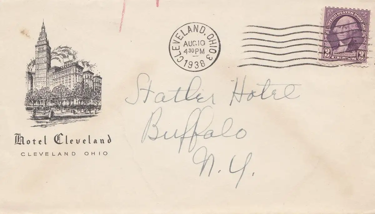 États-Unis d'Amérique 1938: Cleveland, Ohio Hotel to Buffalo, N.Y.