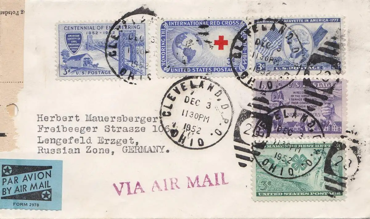 États-Unis 1952: Cleveland, Ohio to Lengefeld, air mail