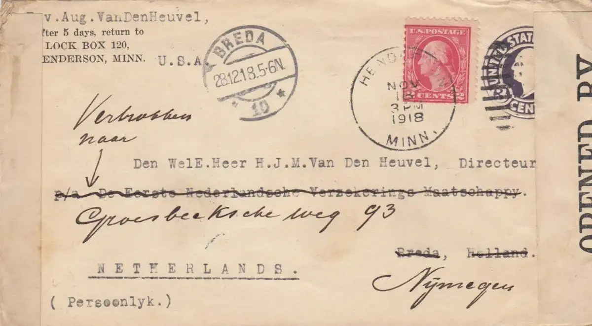 États-Unis: 1x Pittsburg 1905 - Wilkingsburg; 1 x Henderson, Minn 1918 to Breda/Holland