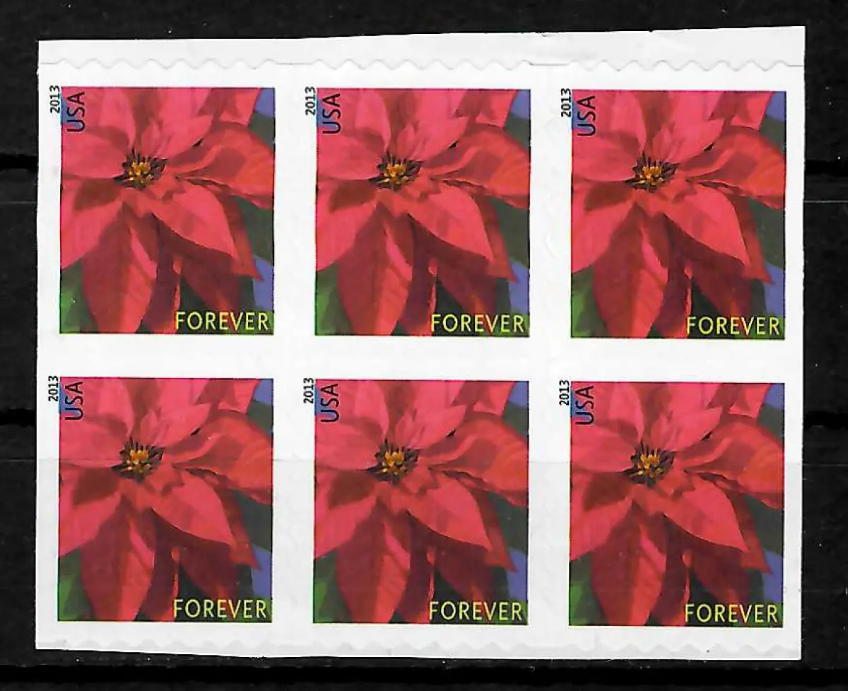 USA 2013: Weihnachtsstern, 6x Briefmarke, postfrisch
