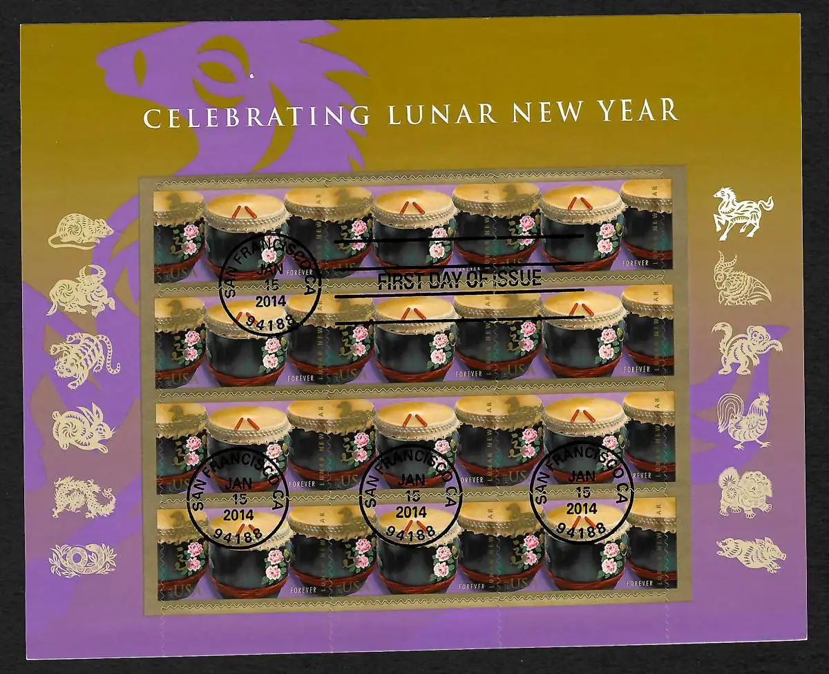 USA: 2014 Celebrating Lunar New Year, sheet - FDC Année du cheval/horses