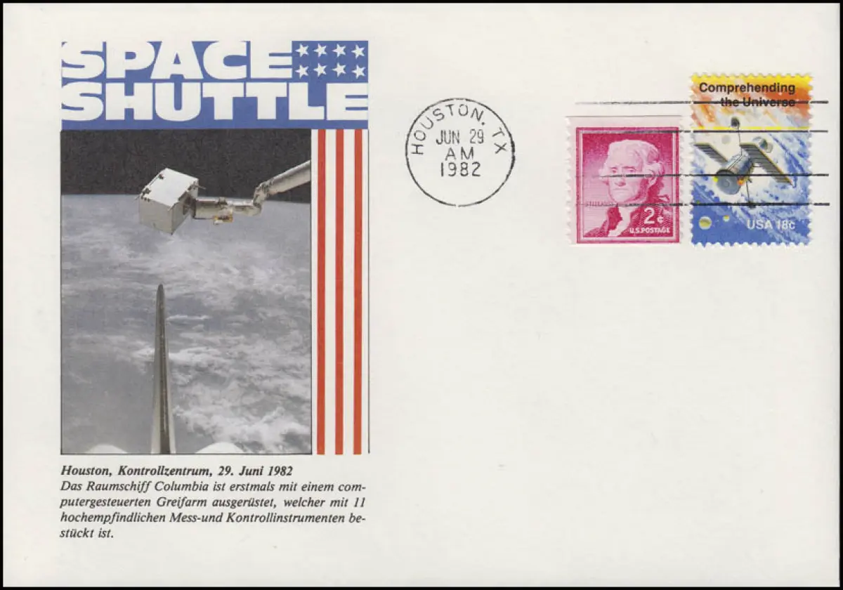 USA: Space Shuttle Columbia avec bras de préhension robotisé, Lettre de bijoux 1982