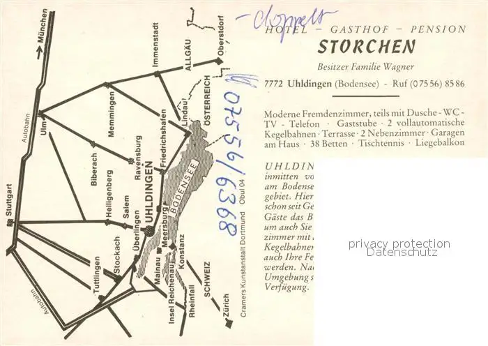Uhldingen-Muehlhofen Hotel Gasthof Storchen Uhldingen-Muehlhofen postalisch nicht gelaufen nach 1965 Werbekarte (keine Postkarte) Erhaltung siehe scans [FriedD77] Werbekarte (keine Postkarte) Frierer