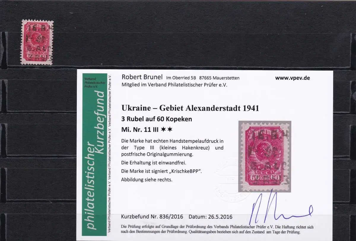 Ukraine 1941 Alexanderstadt: MiNr. 11 III, post-fraîchissement