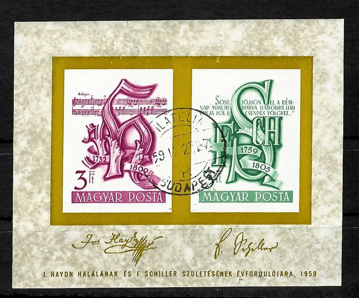 Hongrie: 150e anniversaire de la mort de Joseph Haydn, Friedrich Schiller, #29B, cacheté