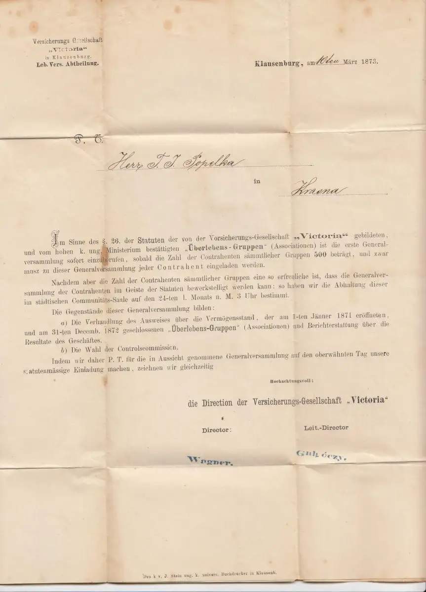 Hongrie: 1873 Klausenburg vers Moravie