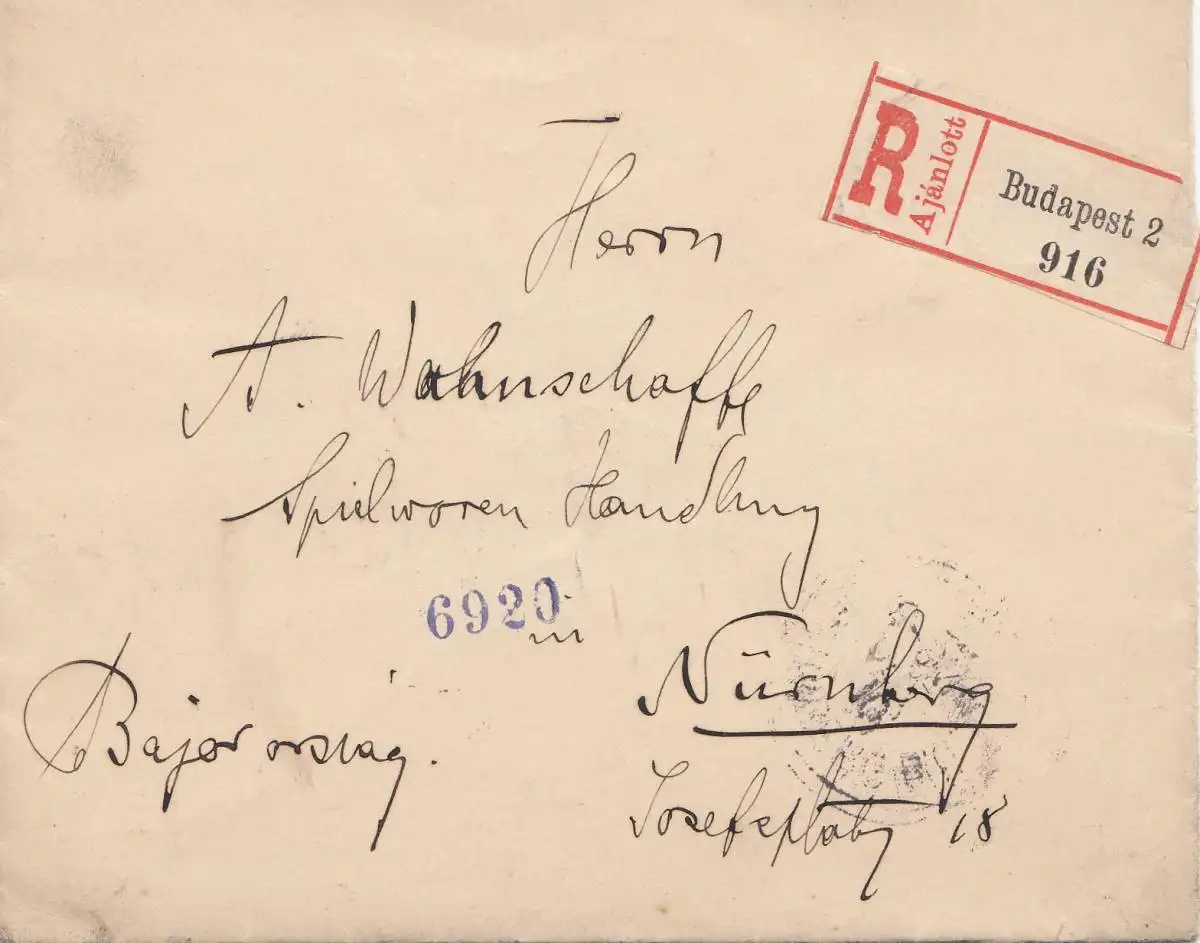 Hongrie: 1899: Lettre recommandé Budapest à Nuremberg