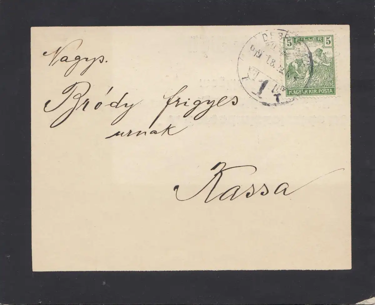 Hongrie: 1919: Lettre de deuil à la Cassa