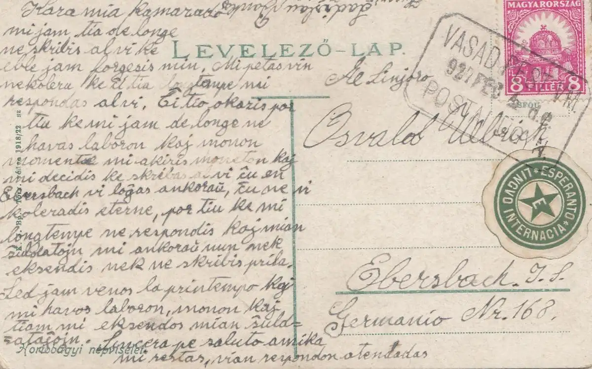 Hongrie: 1927: Carte avec Esperanto Vignette vers Ebersbach