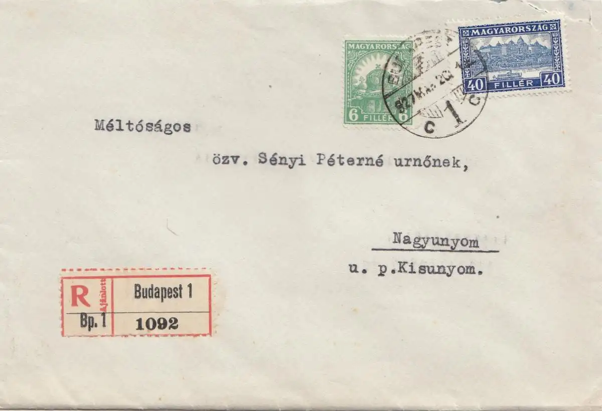 Hongrie: 1927: Inscription Budapest à Nagyunyom