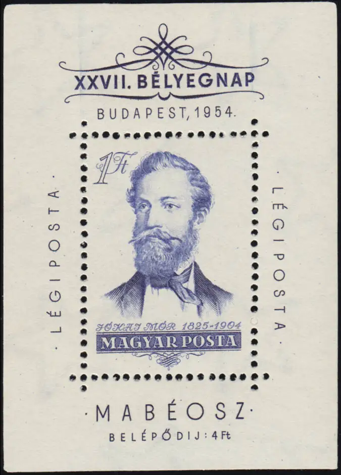 Hongrie: Bloc 24 Maurus Jokai - Journée du timbre 1954, Falzspur * en haut