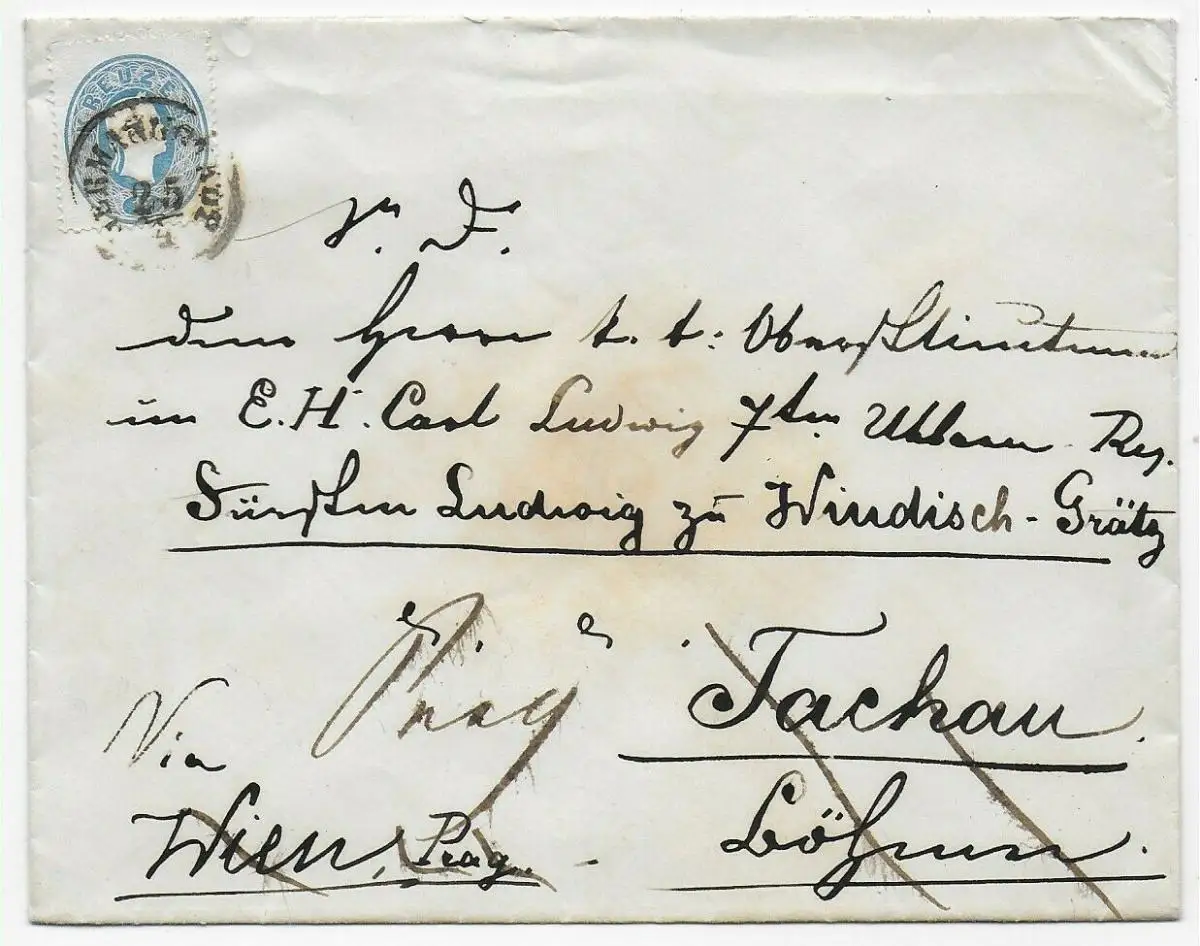 Hongrie Hermannstadt après Tactau via Vienne, suite Prague. Adresse: Windisch-Grätz