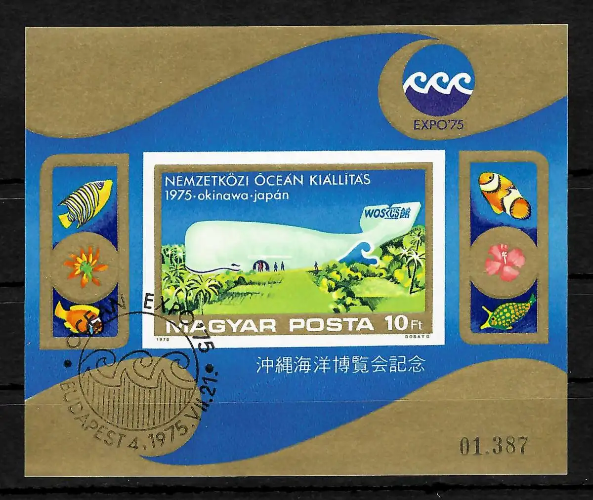 Hongrie: Exposition spéciale EXPO '75 Okinawa , bloc #112B, cacheté