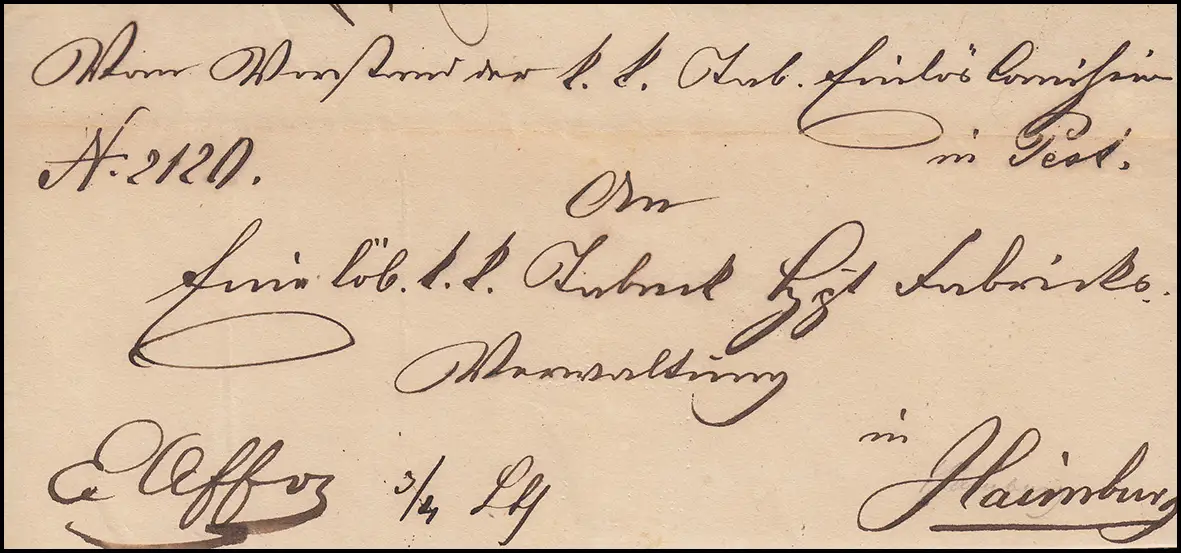 Hongrie Vorphilatelie Lettre de PESTH du 13.9.1846 à HAINBURG 16.9.