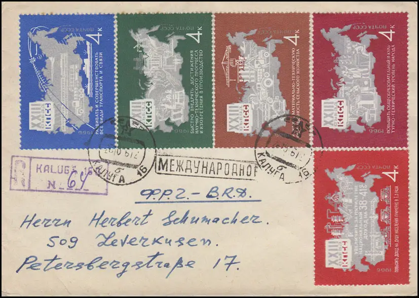 Union soviétique: XXIIIe congrès du parti Carte 1966, 4 valeurs sur R-Bf Kaluga 26.10.66