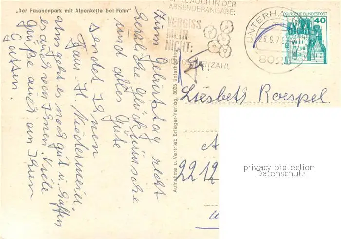 Unterhaching Fasanenpark mit Alpenkette Teilansichten Unterhaching postalisch gelaufen 1978 Erhaltung siehe scans [WerneD78] WernPID7