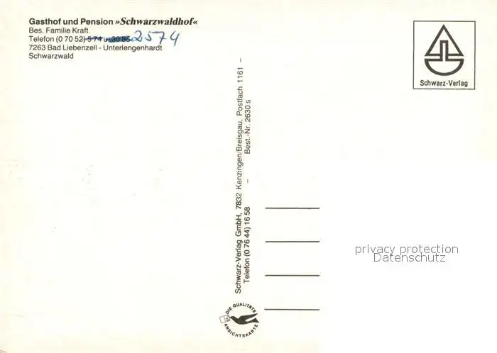 Unterlengenhardt Gasthof Pension Schwarzwaldhof Unterlengenhardt postalisch nicht gelaufen nach 1965 Erhaltung siehe scans [WerneD78] WernPID7
