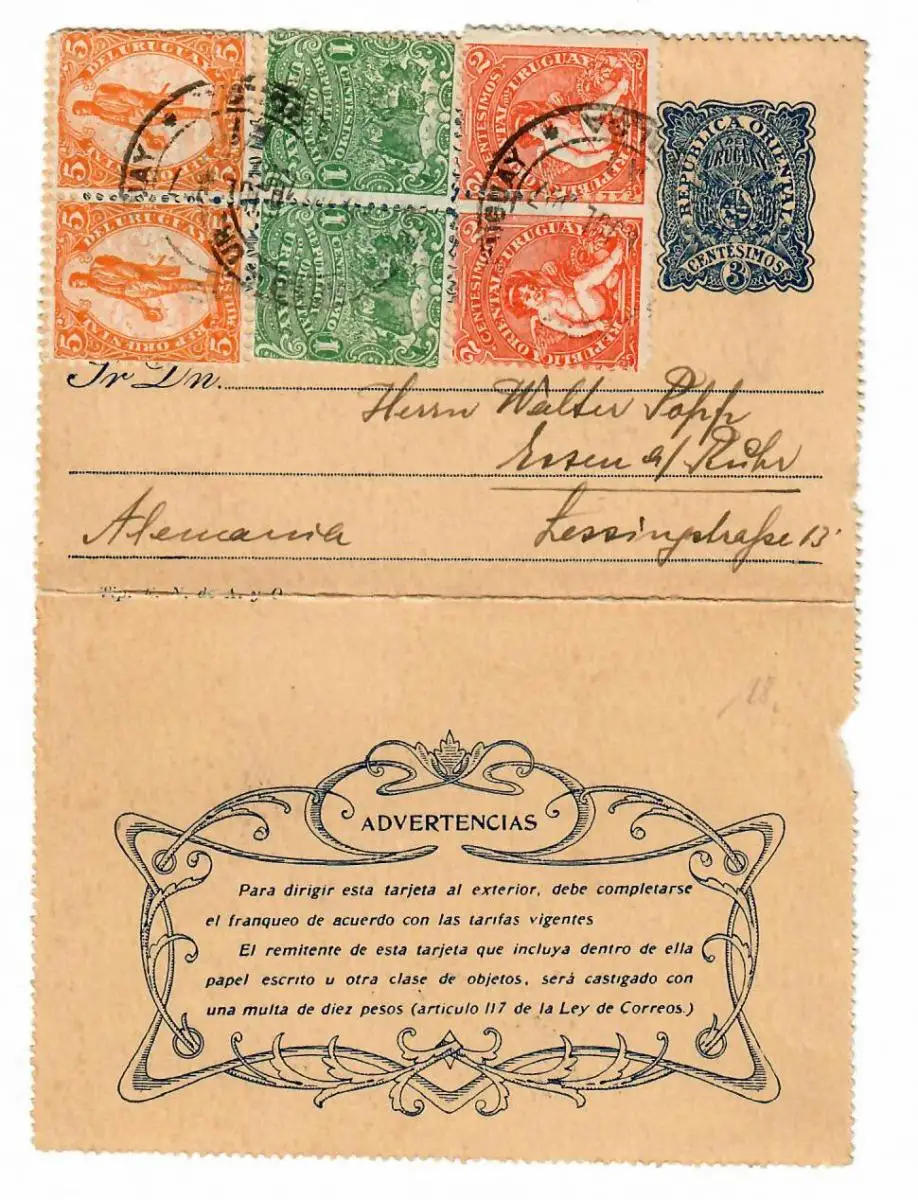 Uruguay 1907: letter Montevideo to Essen/Germany
