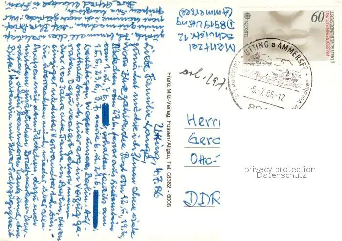 Utting_Ammersee Fliegeraufnahme Seebruecke Kirche Stimmungsbild Utting Ammersee postalisch gelaufen 1986 Erhaltung siehe scans [WerneD78] WernPID7
