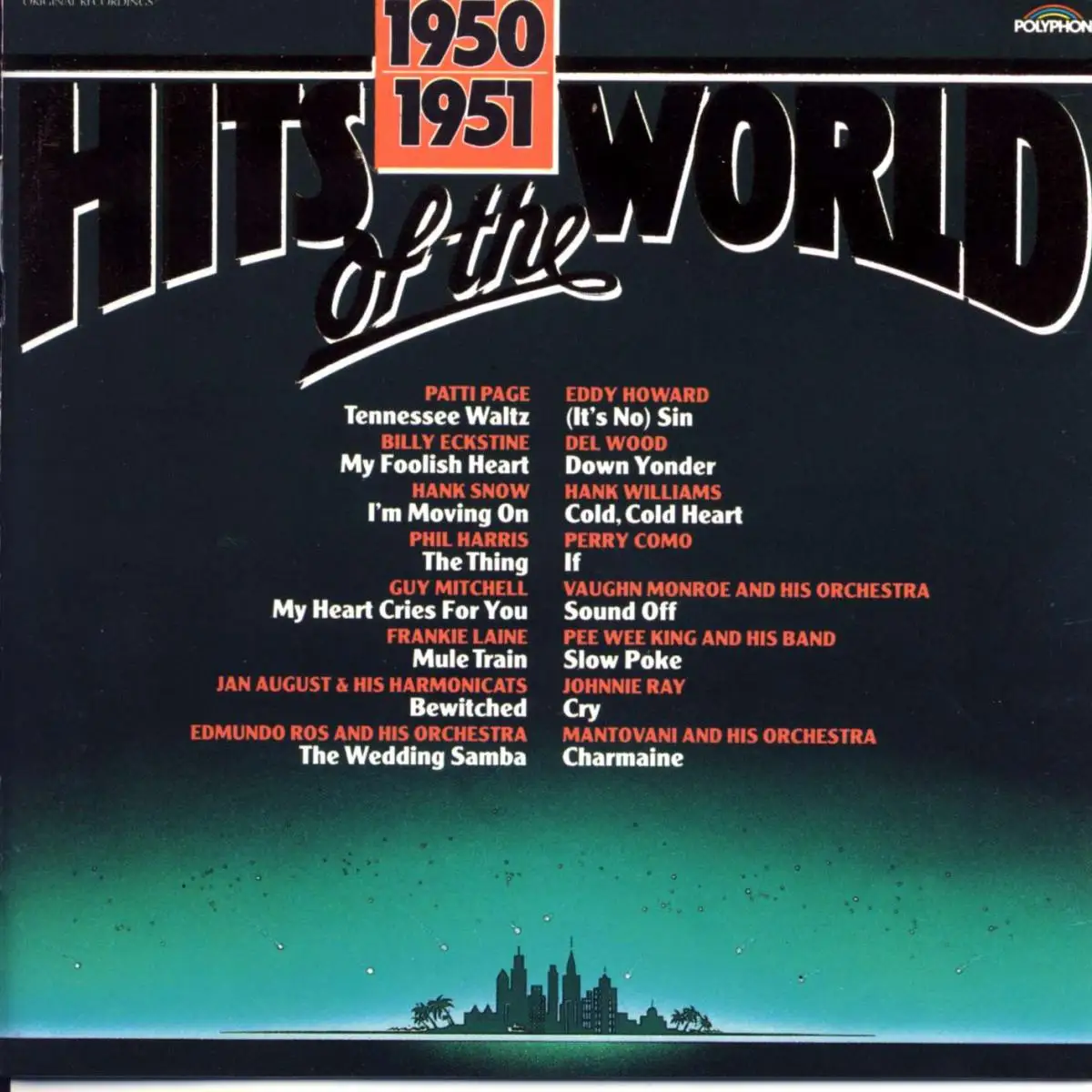 CD Album Various - Hits Of The World 1950/1951, État CD VG+ Hülle M-; Made in Germany 1989 Polyphon 840 520-2, Tracks Patti Page - Tennessee Waltz 3:02, Billy Eckstine - My Foolish Heart 3:20, Hank Snow - I'm Movin& #038; On 2:46, Phil Harris - The Thing 2:18, Guy Mitchell - Mon Heart Cries For You 2:45, Frankie Laine - Mule Train 2:31, Jan August & Jerry Murad&&~039,s Harmonicats - Bewitched 2:44, Edmundo Ros & His Orchestra - the Wedding Samba 2:24, Eddy Howard - it&-#0439;s No Sin 2:47, Del Wood - Down Yonder 2:07, Hank Williams 3: Codd, Hero Restray, Hid, Herve