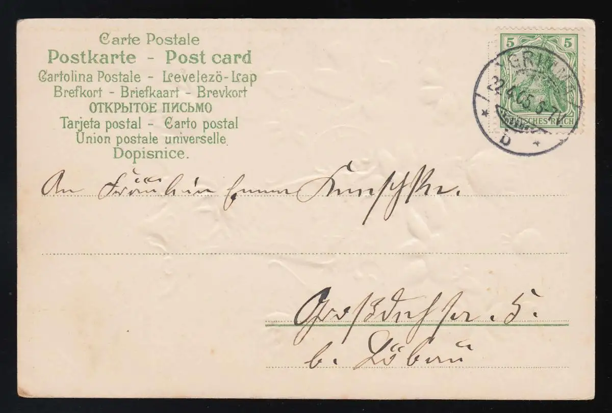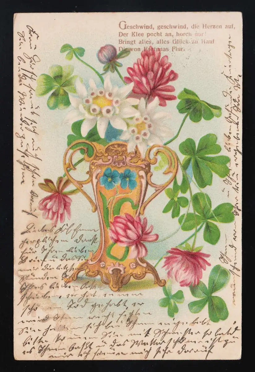 Vase Klee + Edelweiss "Vire, souffle, ouvre les cœurs," Grimma 22.4.1905