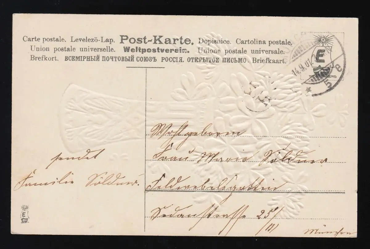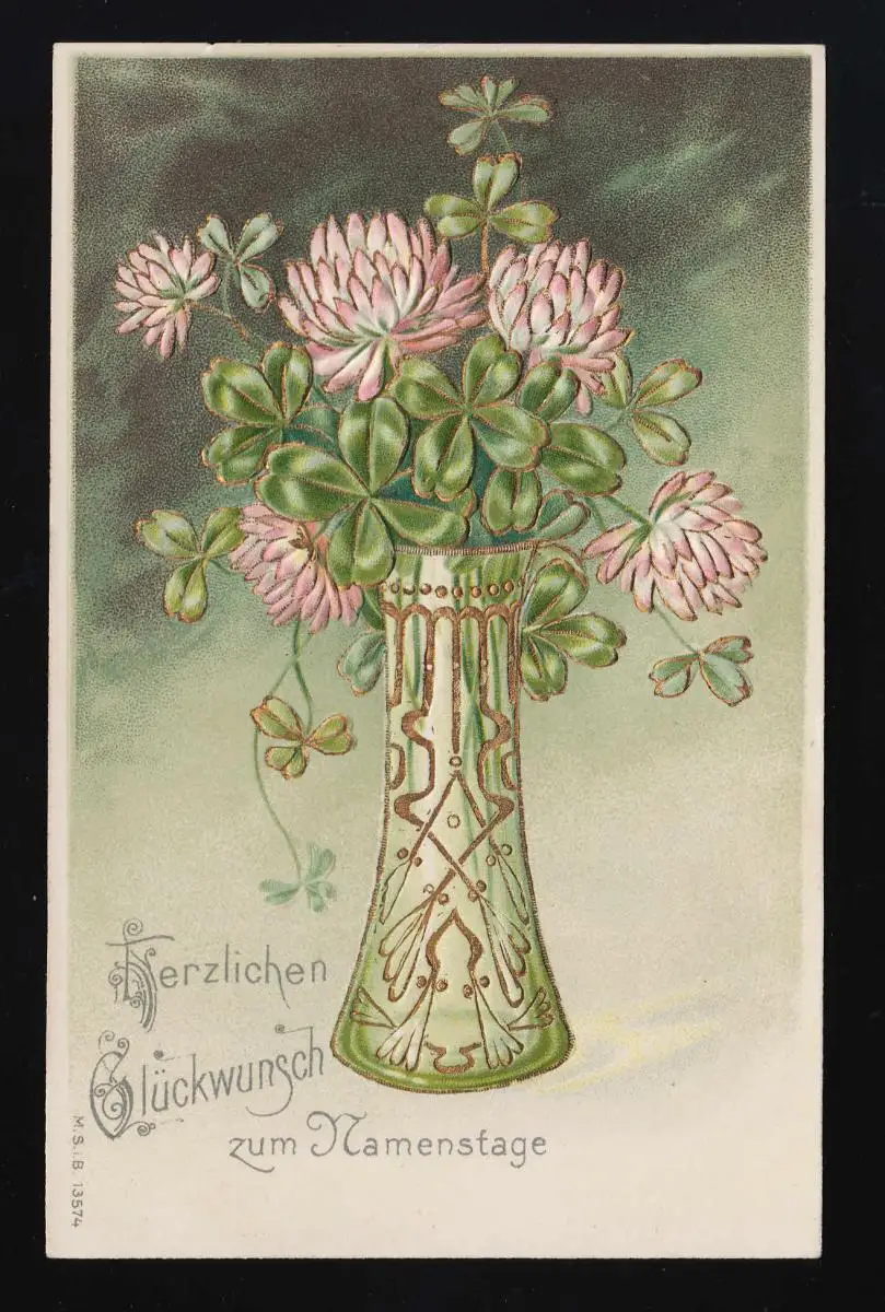 Vase vert or décoré Art Nouveau Klee, Félicitations München 14.9.1901