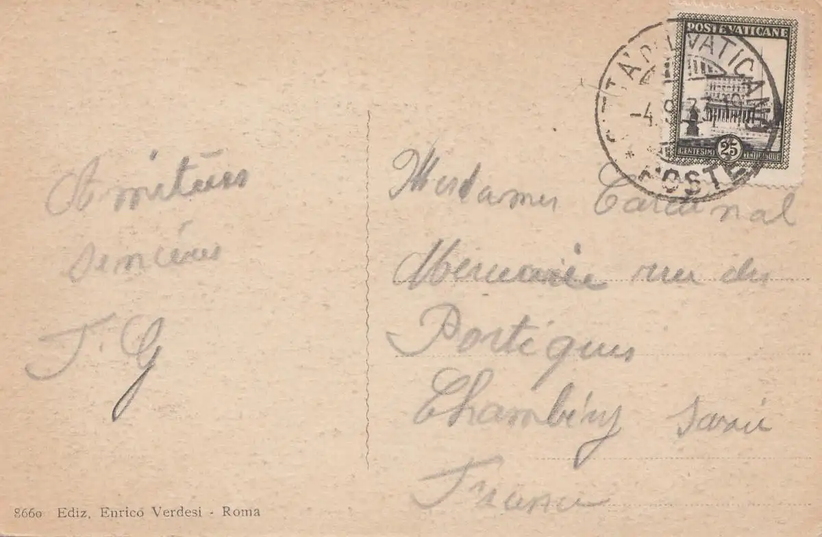 Vatican: 1933: Carte de vue après la France