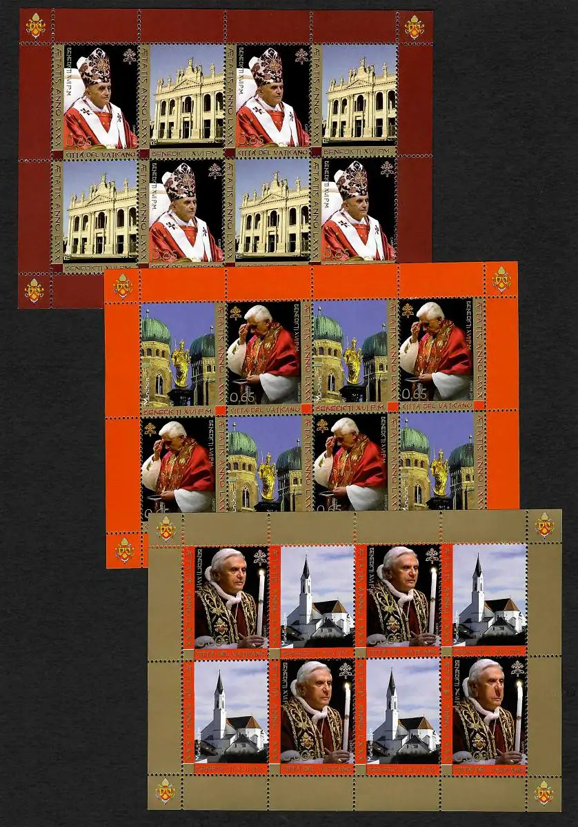 Vatican: 80e anniversaire du pape Benoît XVI, #1573-75 3x arc, **