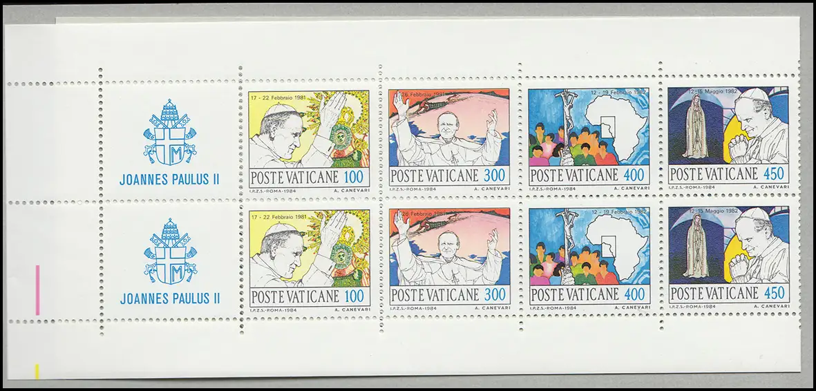 Carnets de Marques Vatican 2 Les voyages mondiaux du Pape Jean-Paul II 1984, **