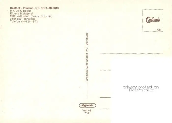 Veilbronn Gasthof Pension Sponsel Regus Veilbronn postalisch nicht gelaufen nach 1965 Erhaltung siehe scans [WerneD78] WernPID7