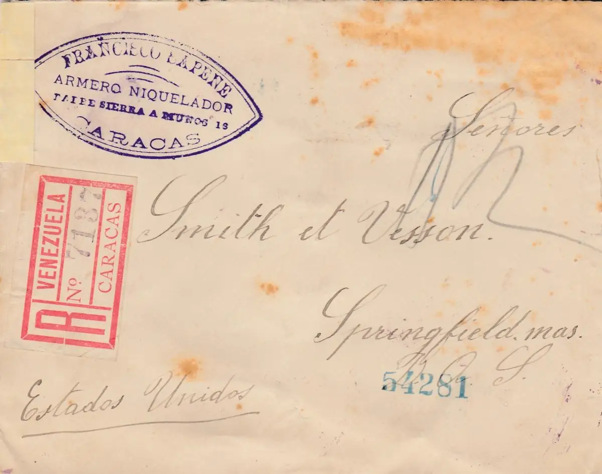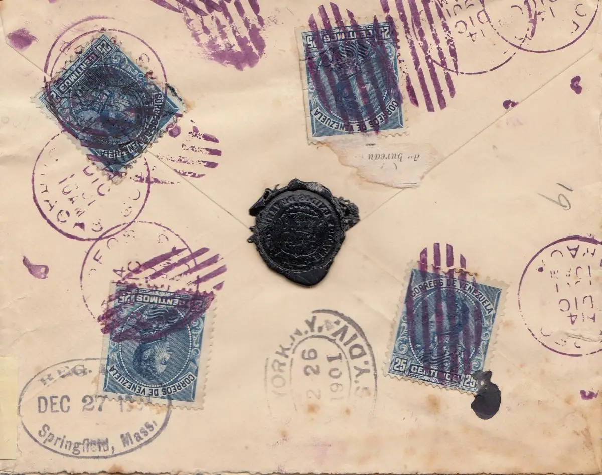 Venezuela 1901: registered Caracas to Springfield, Mass