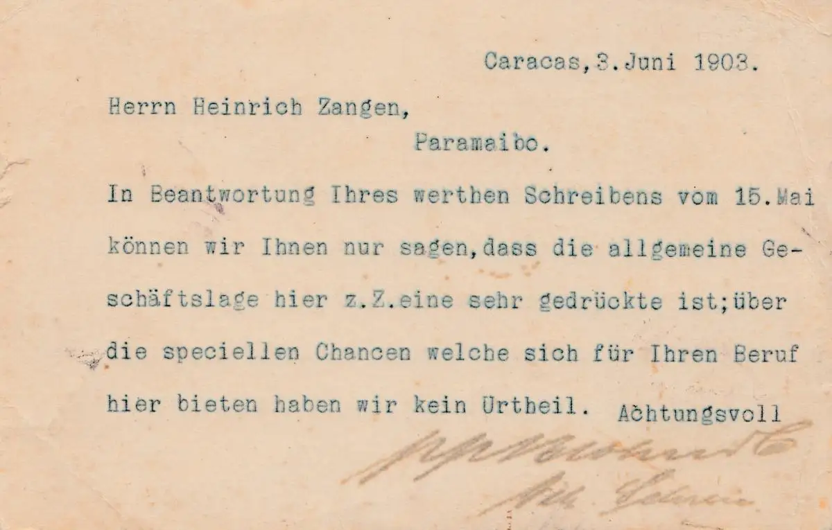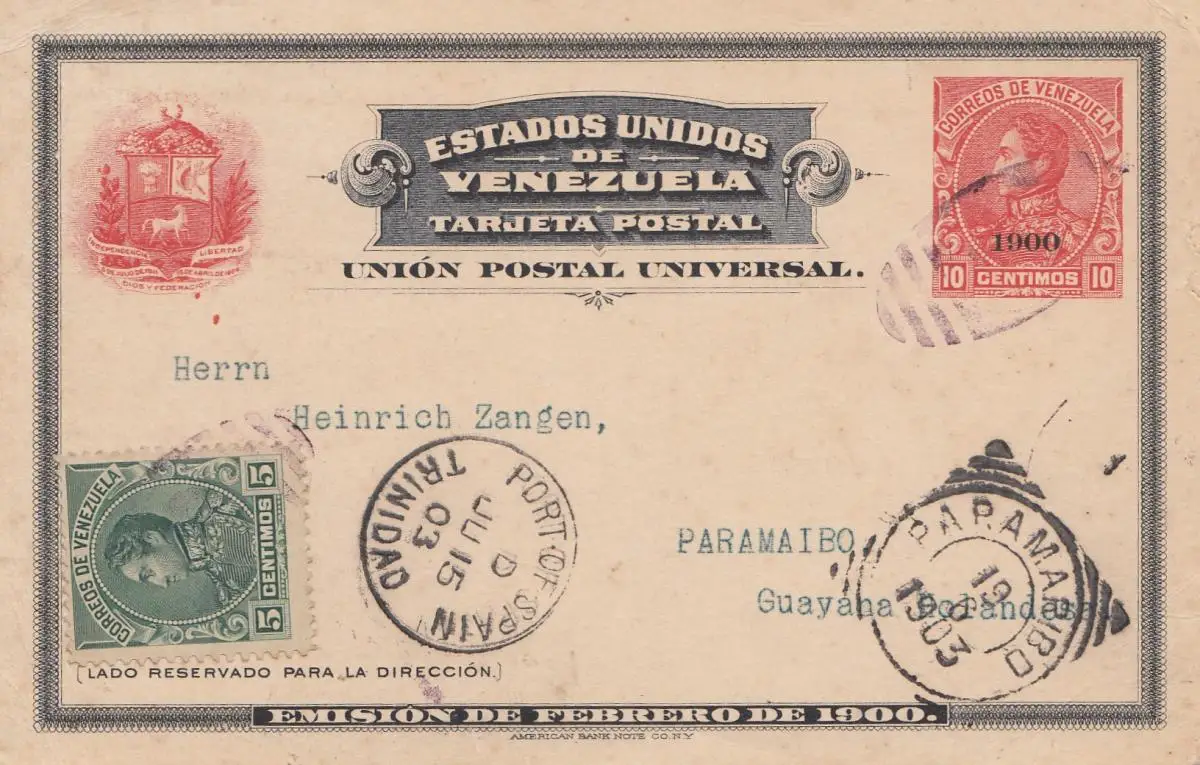 Venezuela 1903: post card Port of Spain, Trinidad to Paramaibo