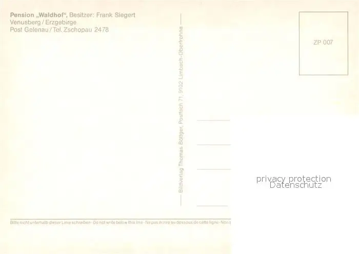Venusberg_Zschopau Pension Waldhof Venusberg Zschopau postalisch nicht gelaufen nach 1965 Erhaltung siehe scans [WerneD78] WernPID7