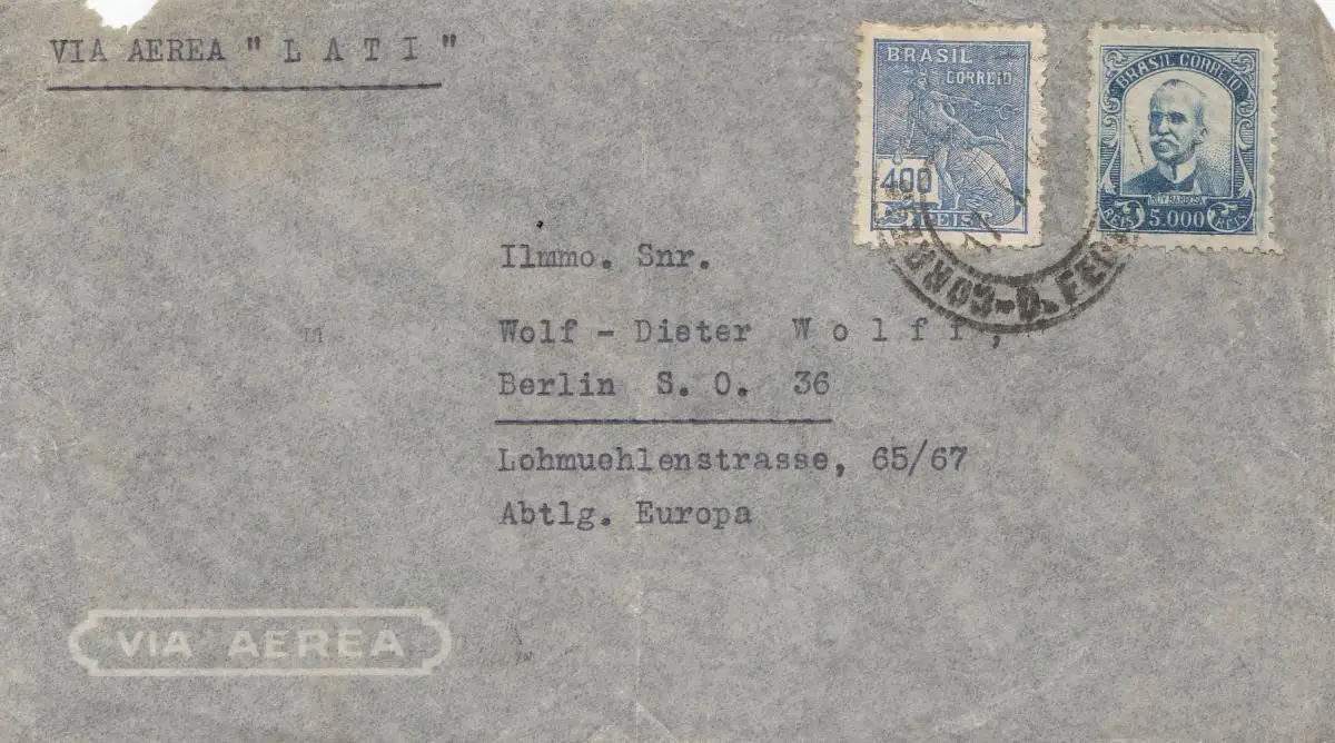 Via Aera LATI Brésil-Berlin 1940 vers Berlin-Latipost, censure