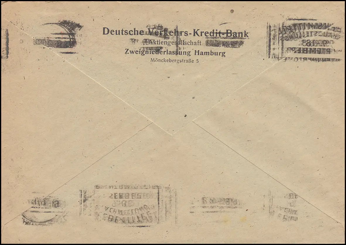 Victimes d'urgence 2 trous de décantation manquants sur la lettre de demande Machine-O HAMBURG 8.8.49