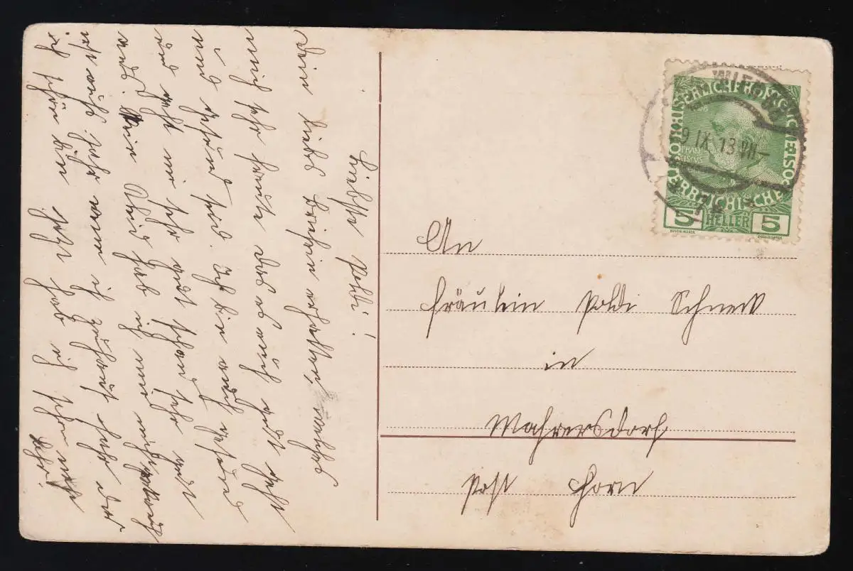 Vieux couple, femme empaillée, mari lui lit devant famille mère père, Vienne 29.9.1913