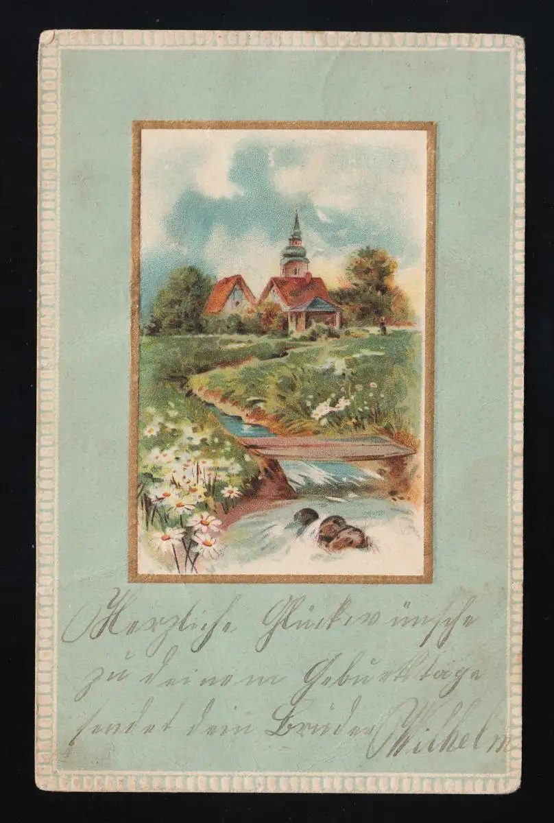 Village Idylle Bach Pont Eglise Wiesen Margeriten, Borgholzhausen 3.2.1905