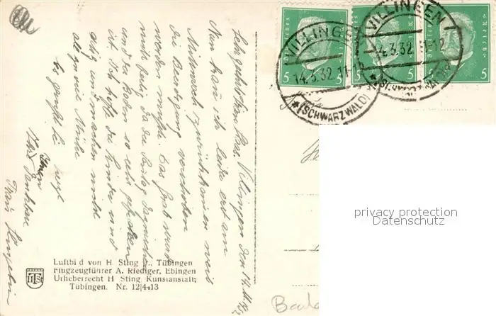 Villingen-Schwenningen Fliegeraufnahme Villingen-Schwenningen postalisch gelaufen 1932 Erhaltung siehe scans [KathaD81] Kathoren