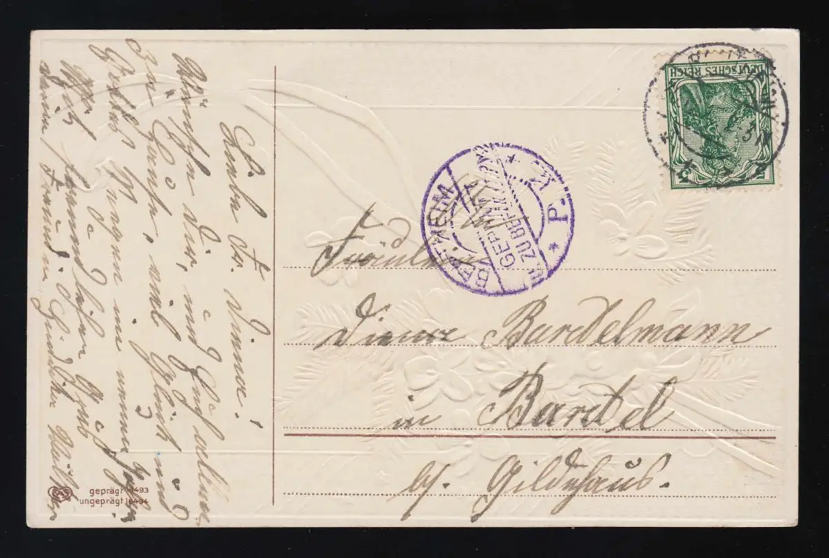 Violet Rubans de l'année nouvelle Zensurstampert Bentheim testé pour transporter 30.12.1915