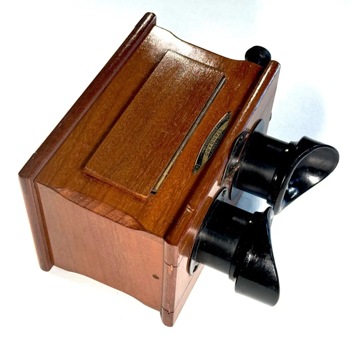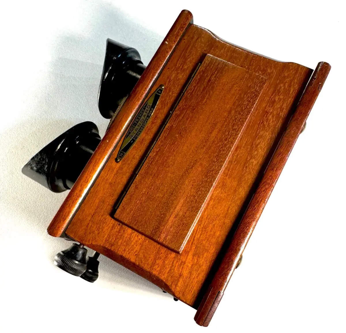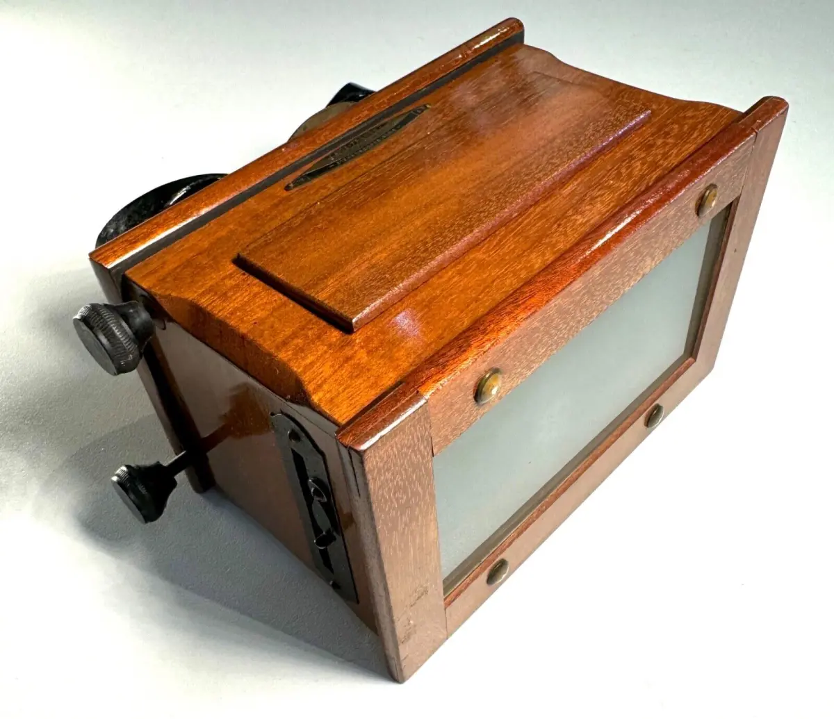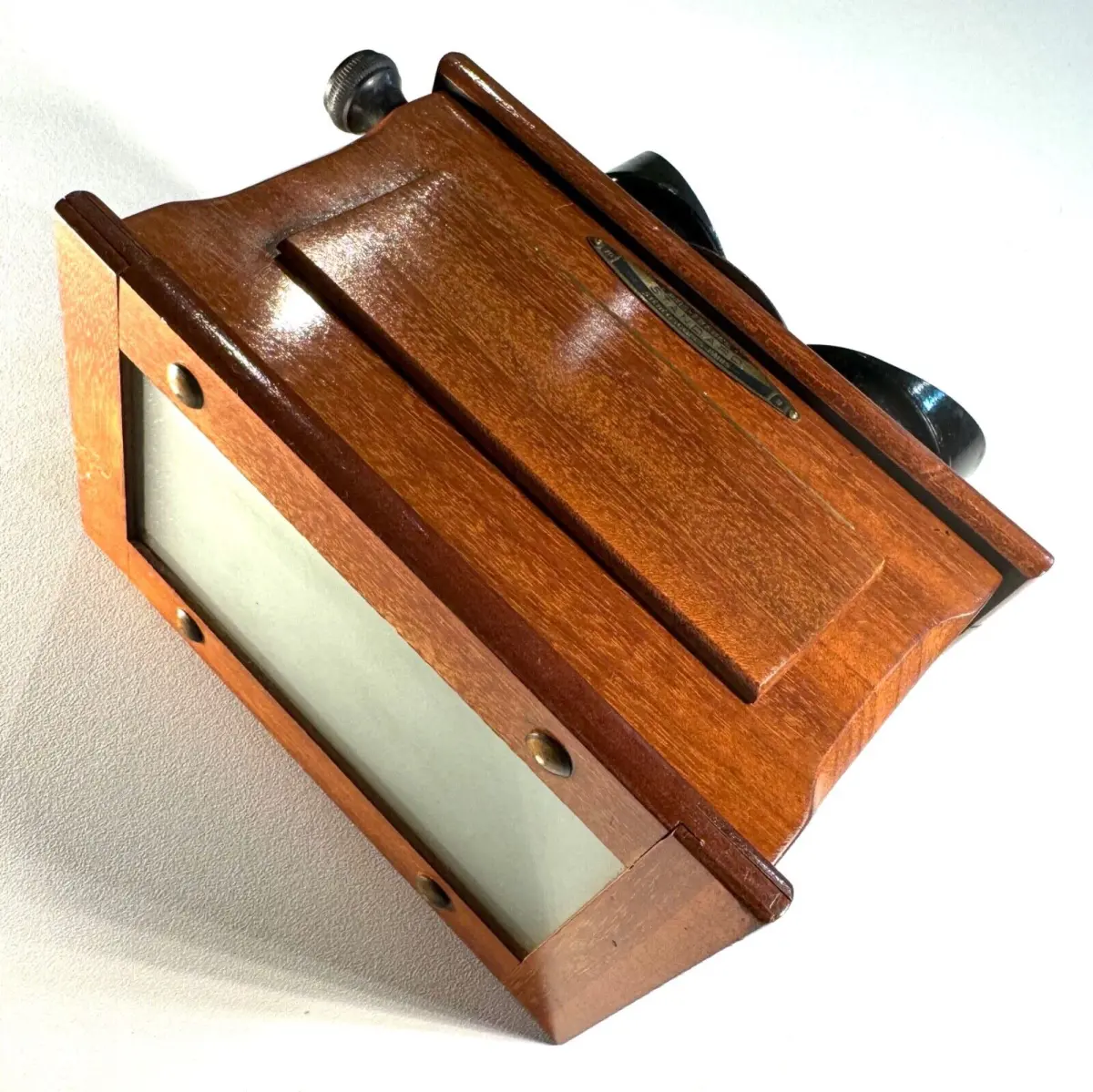 Très belle visionneuse stéréoscopique en acajou Unis-France pour vues 45 x 107mm avec rare règlage de l'écartement des yeux et mise au point par molette.