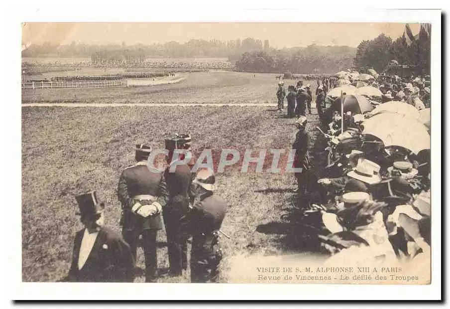 Visite de S M Alphonse XIII a Paris Cartes postales Revue de Vincennes Le defile des troupes